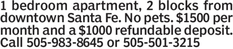 1 bedroom 1 bath. Kitchen, living, dining. 1 car parking. Air conditioning. Washer, dryer in unit. Clean and bright. Walking distance to Plaza. $1,400 / mo. 505-670-2366