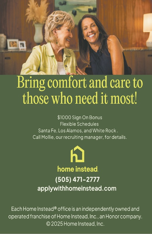 BRING COMFORT AND CARE TO THOSE WHO NEED IT MOST!• $1000 Sign on Bonus• Flexible Schedules• Santa Fe, Los Alamos, and White RockCall Mollie, Recruiting Manager, for details(505) 471-2777