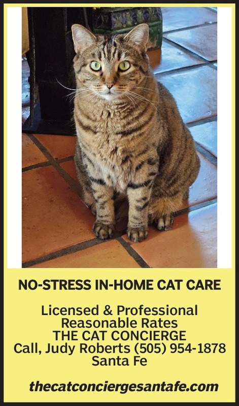 NO-STRESS IN-HOME CAT CARE Licensed & Professional Reasonable Rates THE CAT CONCIERGECall, Judy Roberts (505) 954-1878Santa Fe thecatconciergesantafe.com