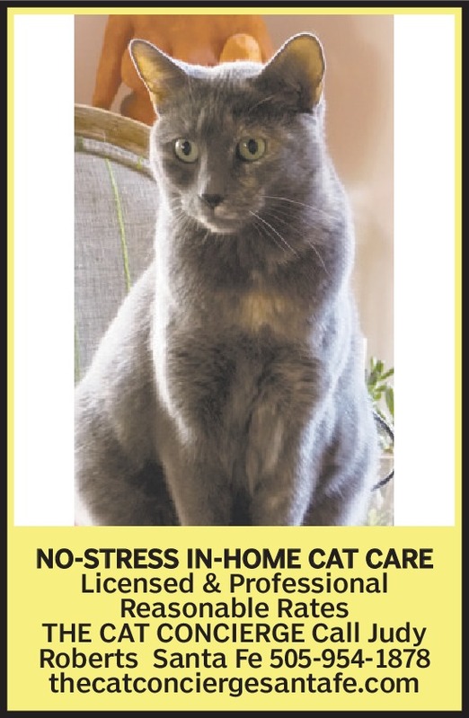 NO-STRESS IN-HOME CAT CARE Licensed & Professional Reasonable Rates THE CAT CONCIERGE Call Judy Roberts Santa Fe 505-954-1878 thecatconciergesantafe.com