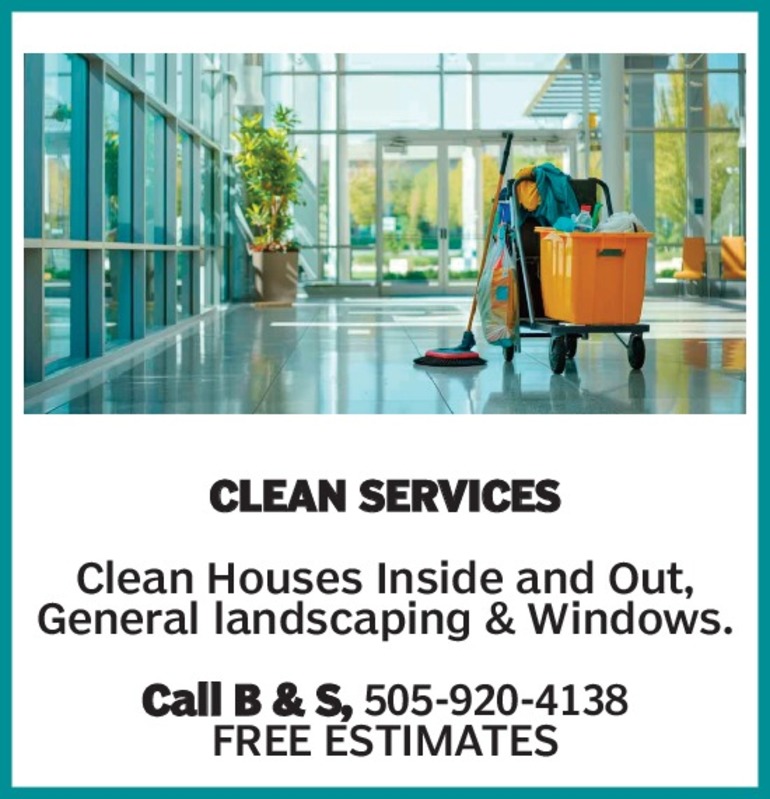 CLEAN SERVICESClean Houses Inside and Out, General landscaping & Windows. Call B & S, 505-920-4138 FREE ESTIMATES
