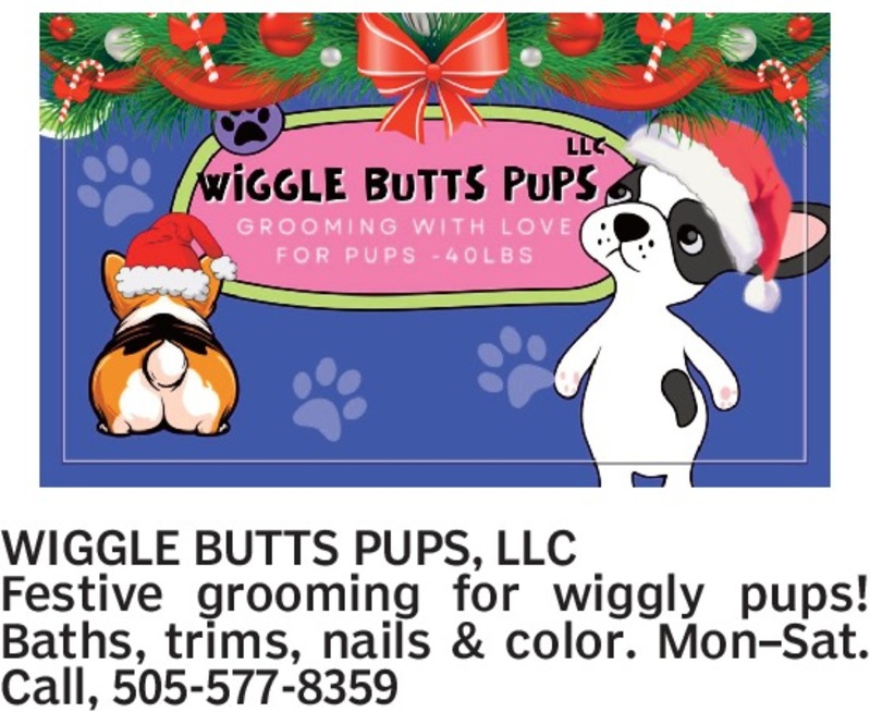 WIGGLE BUTTS PUPS, LLC Festive grooming for wiggly pups! Baths, trims, nails & color. Mon–Sat. Call, 505-577-8359
