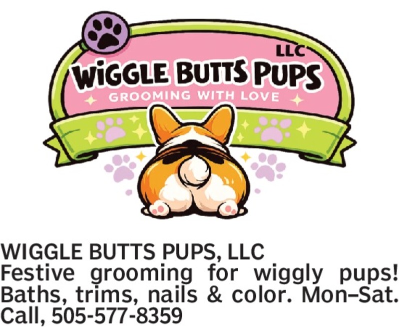 WIGGLE BUTTS PUPS, LLC Festive grooming for wiggly pups! Baths, trims, nails & color. Mon–Sat. Call, 505-577-8359